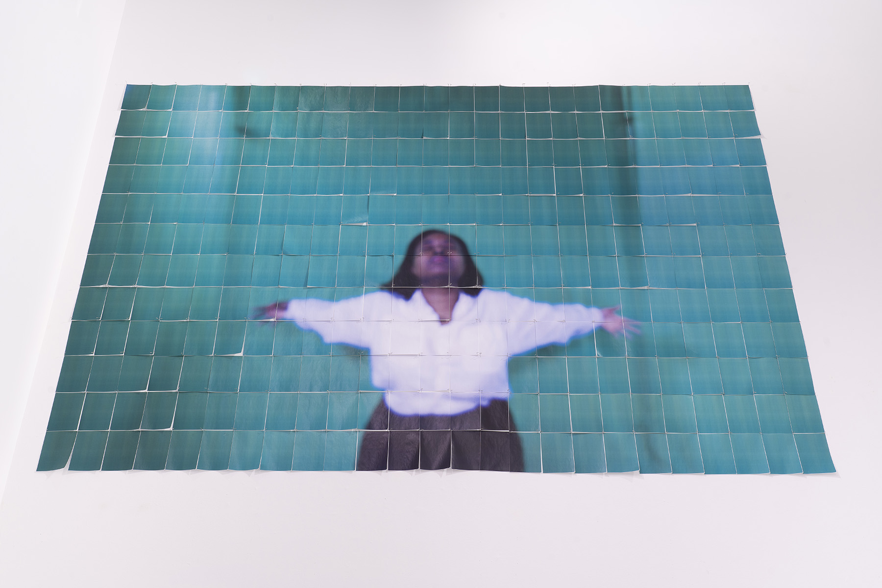 Quilts are intimate aesthetic objects that stack up at the end of bedframes, heirlooms passed down through generations’ hands. Here, it is not merely the quilt as an object that has been passed down, but the process of its own making: each quilted tile has been judiciously crafted and designed in collaboration with their grandmother, Patricia Russell. This embodied act of intergenerational communion tesseracts time to produce a quilt manifested by stolen time, queer time, black time, time wrestled back from the grips of linear progression. Incidentally, the same can be said for dancing, or for sleeping.